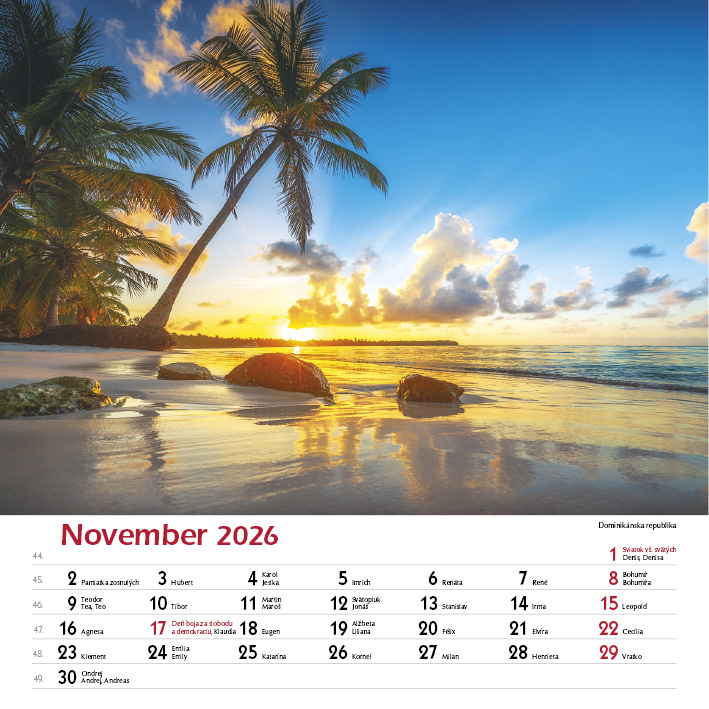 Oddajte sa letnému snívaniu po celý rok s týmto kalendárom plným rajských pláží a tropickej atmosféry. Sny leta vás zavedú na najkrajšie pobrežia sveta – belostné pláže Bahám, tyrkysové lagúny Bora Bora, palmové raje Fidži, exotické zákutia Srí Lanky. Perfektný kalendár pre milovníkov leta, cestovania a snov o dovolenke, ktorá nikdy nekončí.