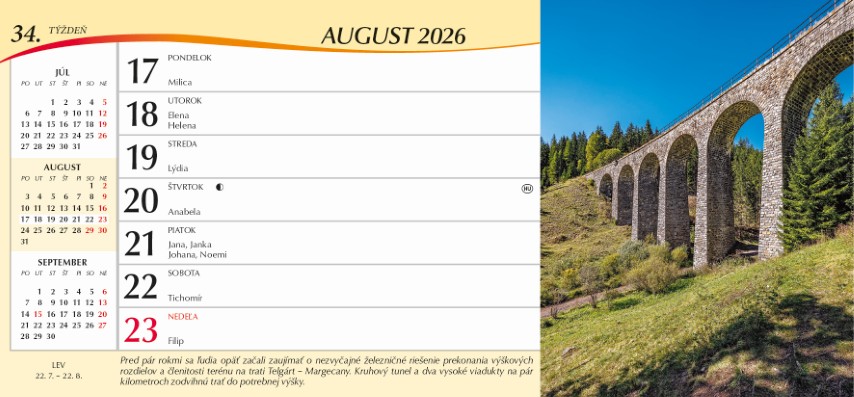 Týždňový riadkový kalendár, s ktorým spoznáte doteraz možno nepoznané zákutia Slovenska. Inšpirujte sa našimi tipmi a naplánujte si zaujímavé výlety po Slovensku.