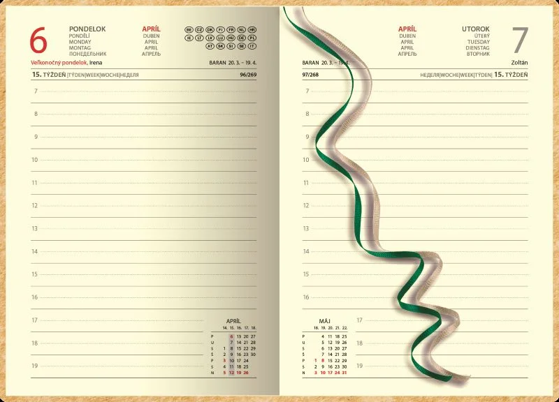 Certifikovaný týždenný diár s prehľadným slovenským kalendáriom na každý týždeň. Na obal je použitý vysokokvalitný papier NAPURA s prírodným dizajnom, 100 % recyklovateľný, s lacetkou. Vďaka vysokej kvalite vlákien je možná: termorazba, razba fóliou alebo ÚV tlač.
