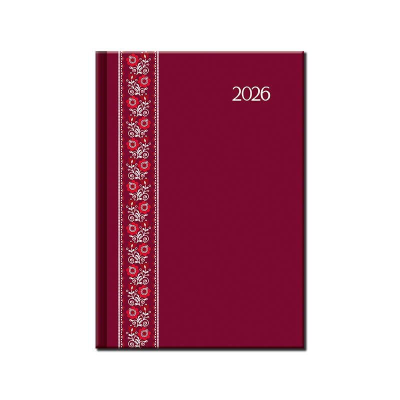 Obľúbený denný diár má oderuvzdorný povrch s motívom folklórnej stuhy. Efektná razba fóliou a 3D lak vytvárajú dokonalý dizajn. Jediný svojho druhu na trhu. Obsahuje slovenské kalendárium. Bočné plochy diára sú potlačené farebným motívom.