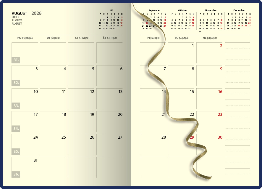 Obľúbený týždenný diár má oderuvzdorný povrch s motívom folklórnej stuhy. Efektná razba fóliou a 3D lak vytvárajú dokonalý dizajn. Jediný svojho druhu na trhu.