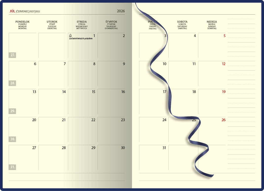 Manažérsky týždenný diár s prehľadným kalendáriom na každý týždeň. Diár je v pevnej väzbe s prednou penovou doskou, jednoduchý dizajn dopĺňa strieborná razba roku. Obsahuje slovenské kalendárium.